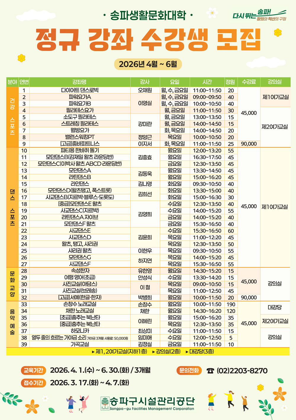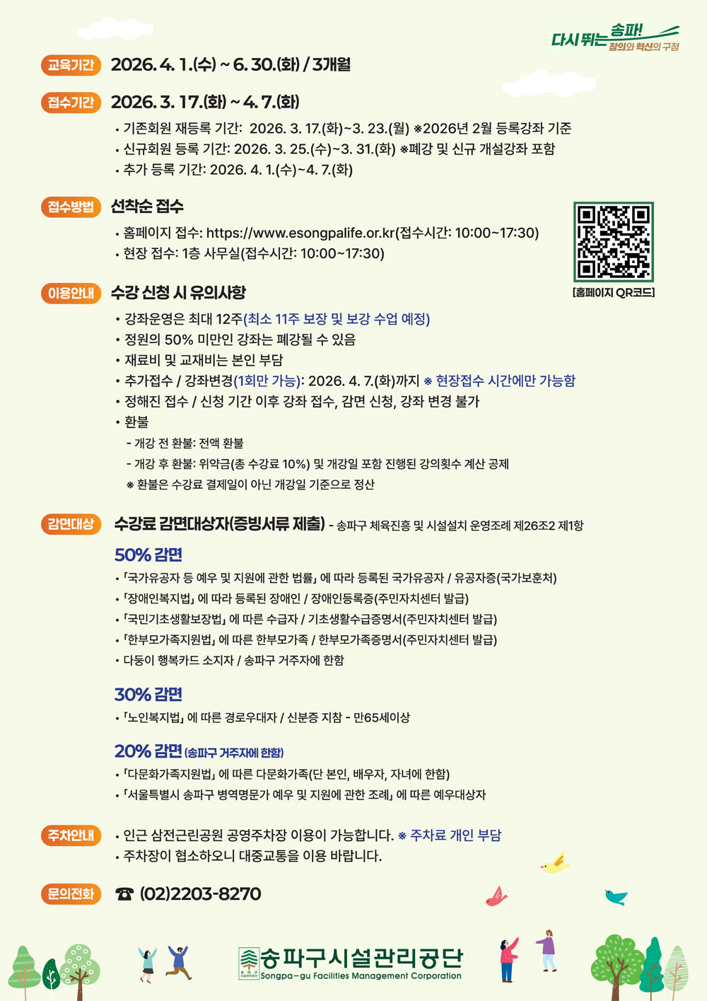 ¼¿ï ¼ÛÆÄ±¸ ¹éÁ¦°íºÐ·Î 242 ¼ÛÆÄ¹®È¿¹¼úȸ°ü 1Ãþ ´ëÇ¥ÀüÈ : 02-2203-8270 COPYRIGHT (C) 2020 SONGPA LIVING CULTURE CENTER ALL RIGHTS RESERVED.